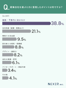 続いて、建築会社を選ぶ際に重視したポイントについて聞いてみました。
