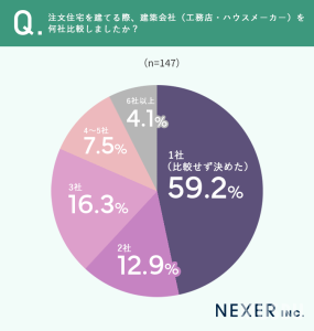 まず、建築会社(工務店・ハウスメーカー)を何社比較したかについて聞いてみました。