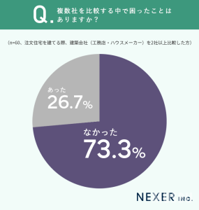続いて、注文住宅を建てる際に2社以上を比較した方に、比較する中で困ったことがあったかを調査しました。